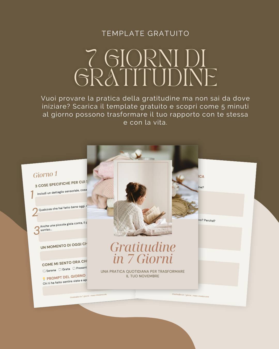 Questo template ti guida attraverso 7 giorni di pratica quotidiana della gratitudine con: